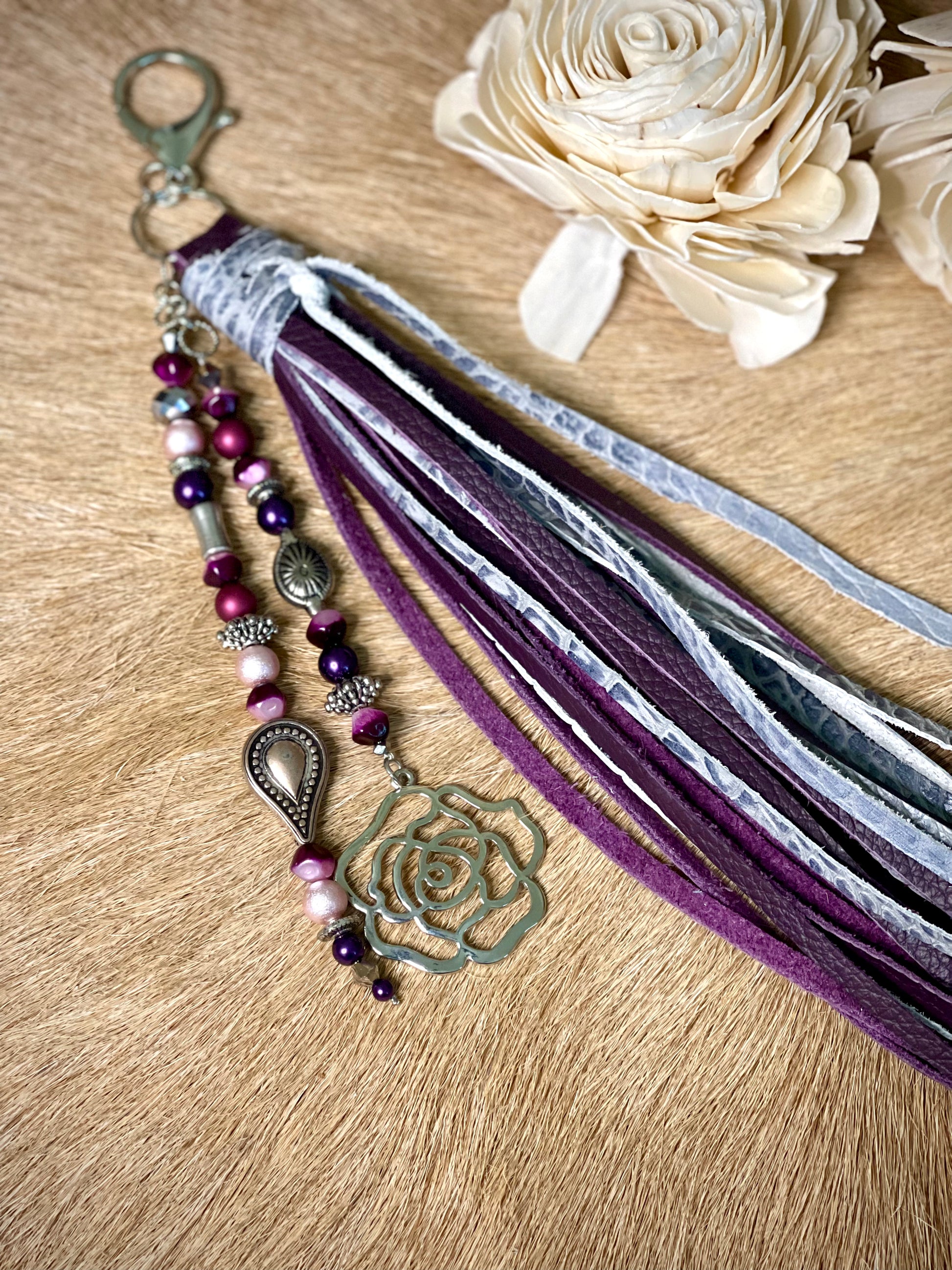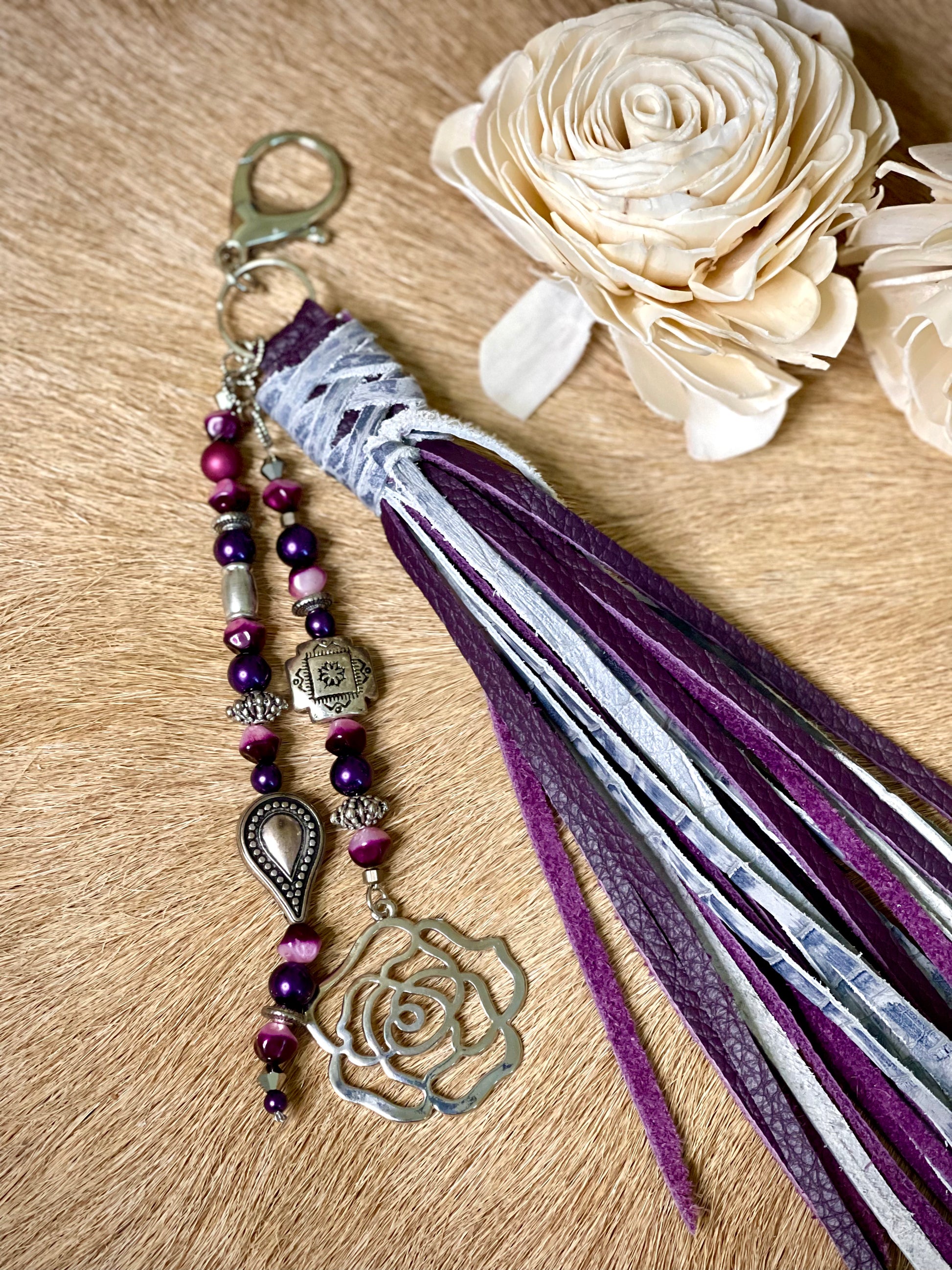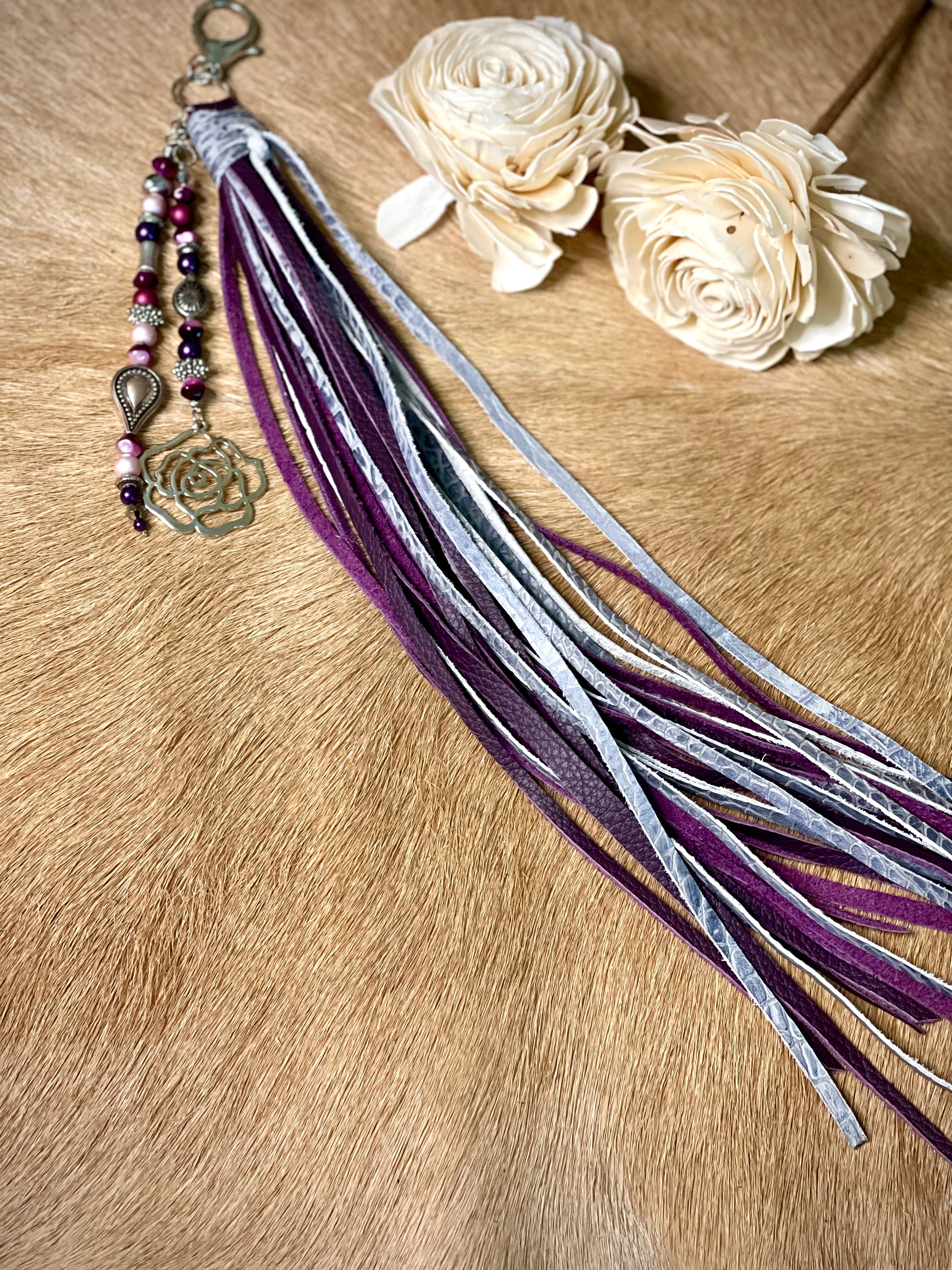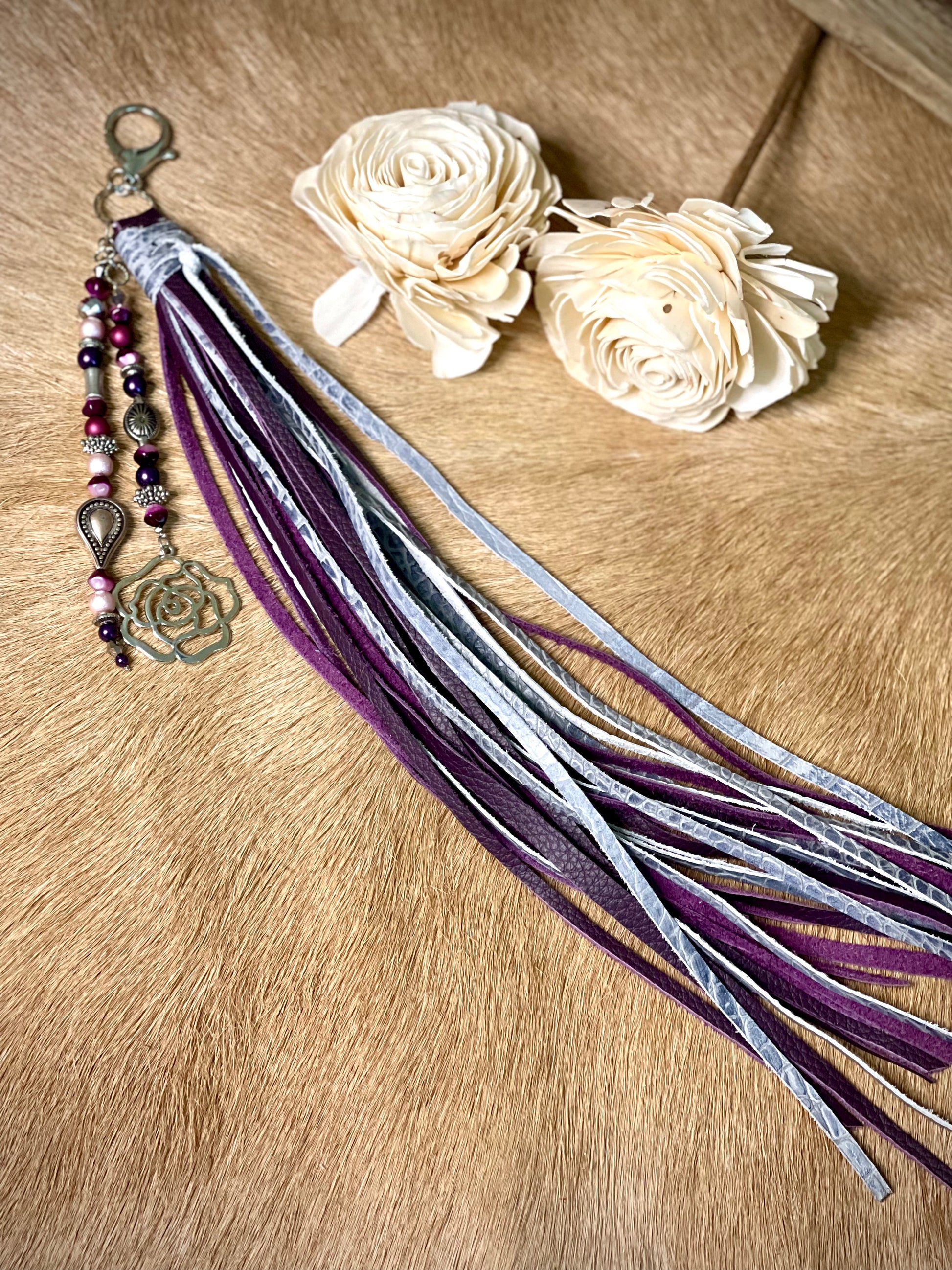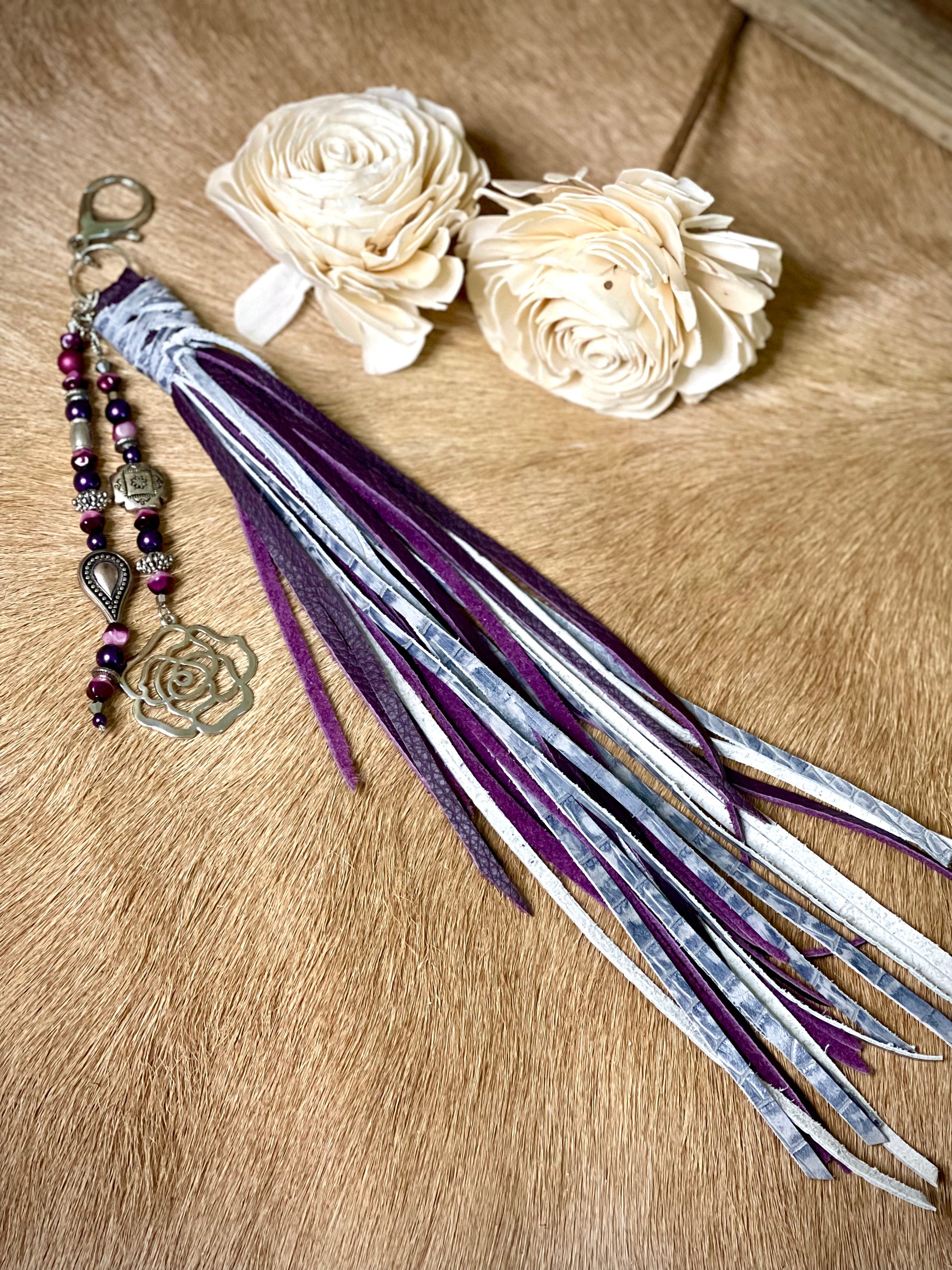 Purple & Gray Leather w/Matching Beads - Purse Tassel