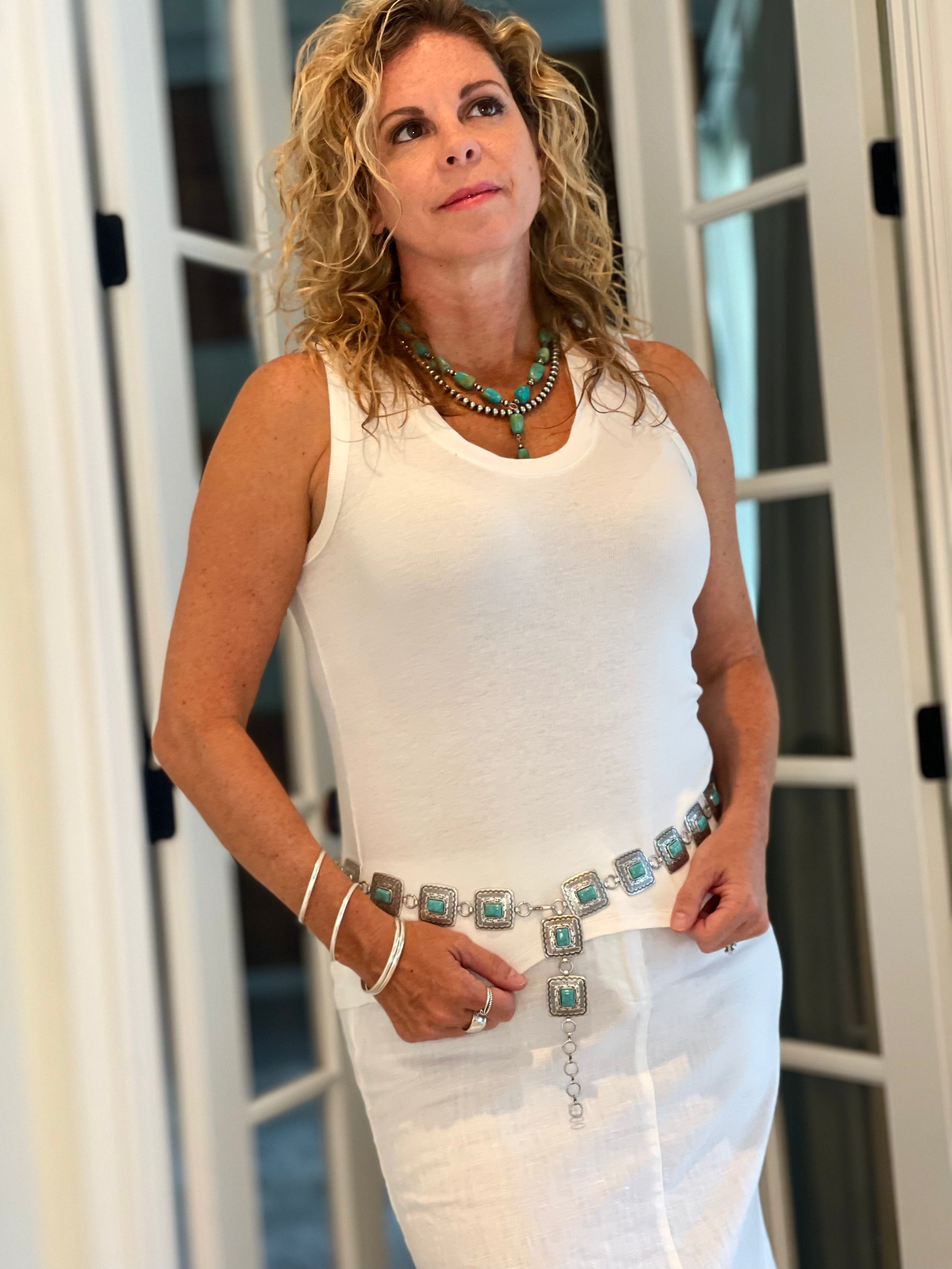 Beautiful, unique, and OMG Fabulous! Adjustable metal belt with turquoise accents, and hook closure.