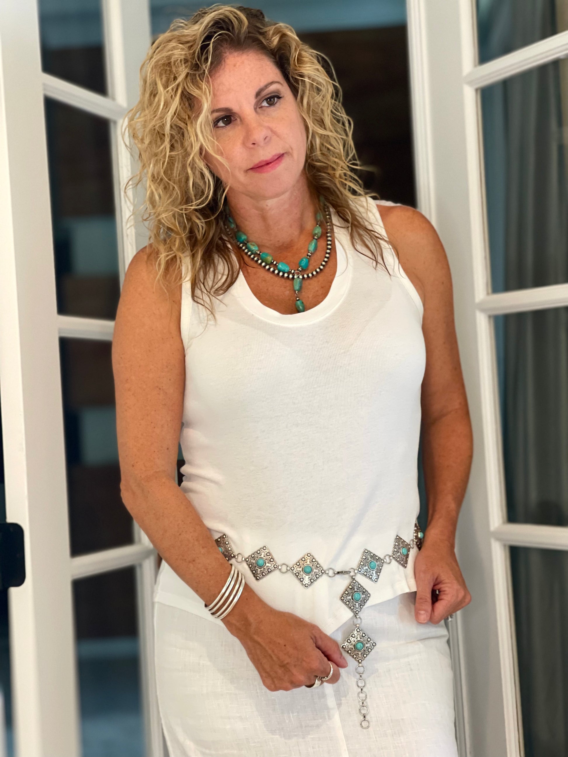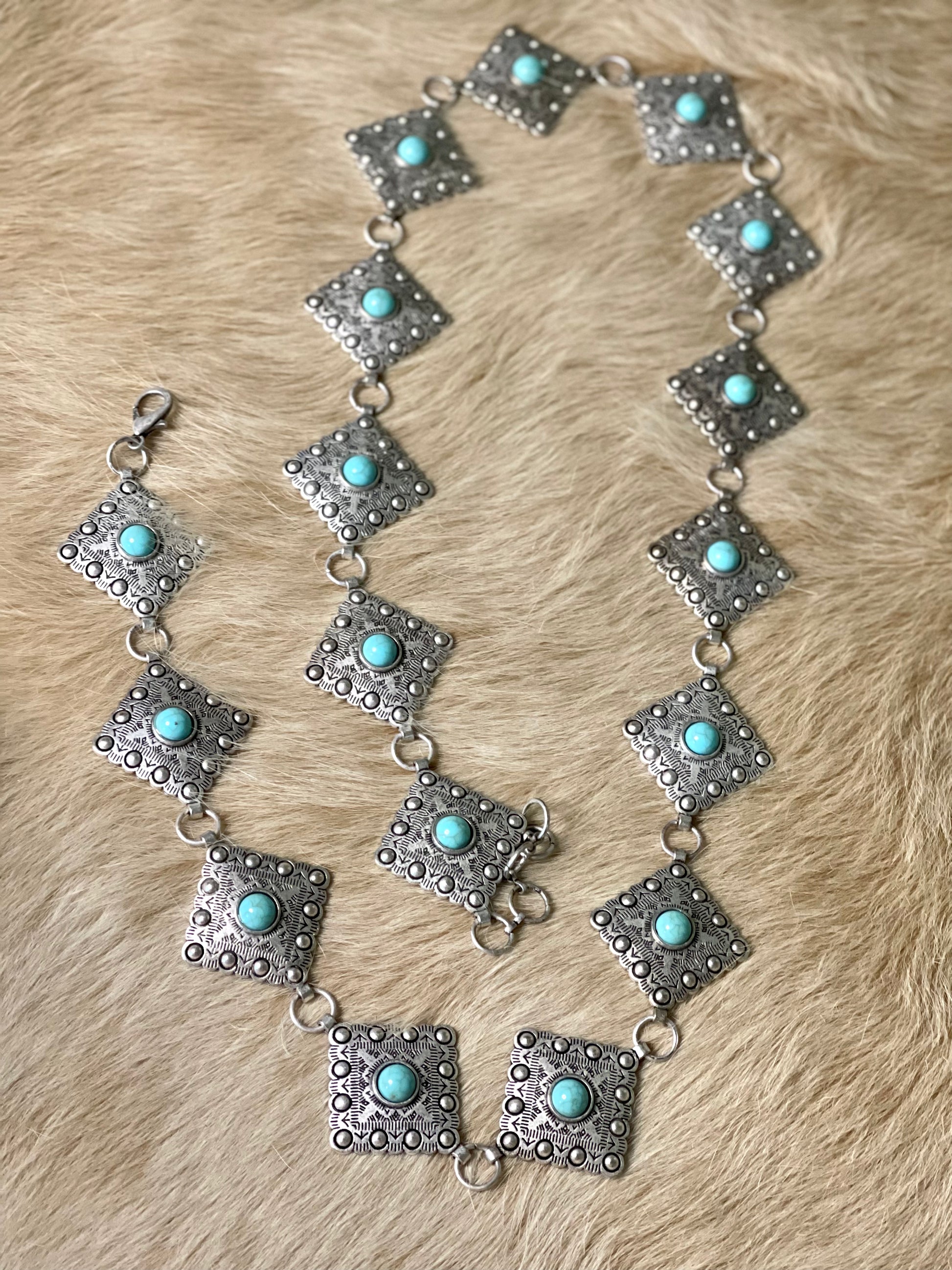 Beautiful, unique, and OMG Fabulous! Adjustable metal belt with turquoise accents, and hook closure.