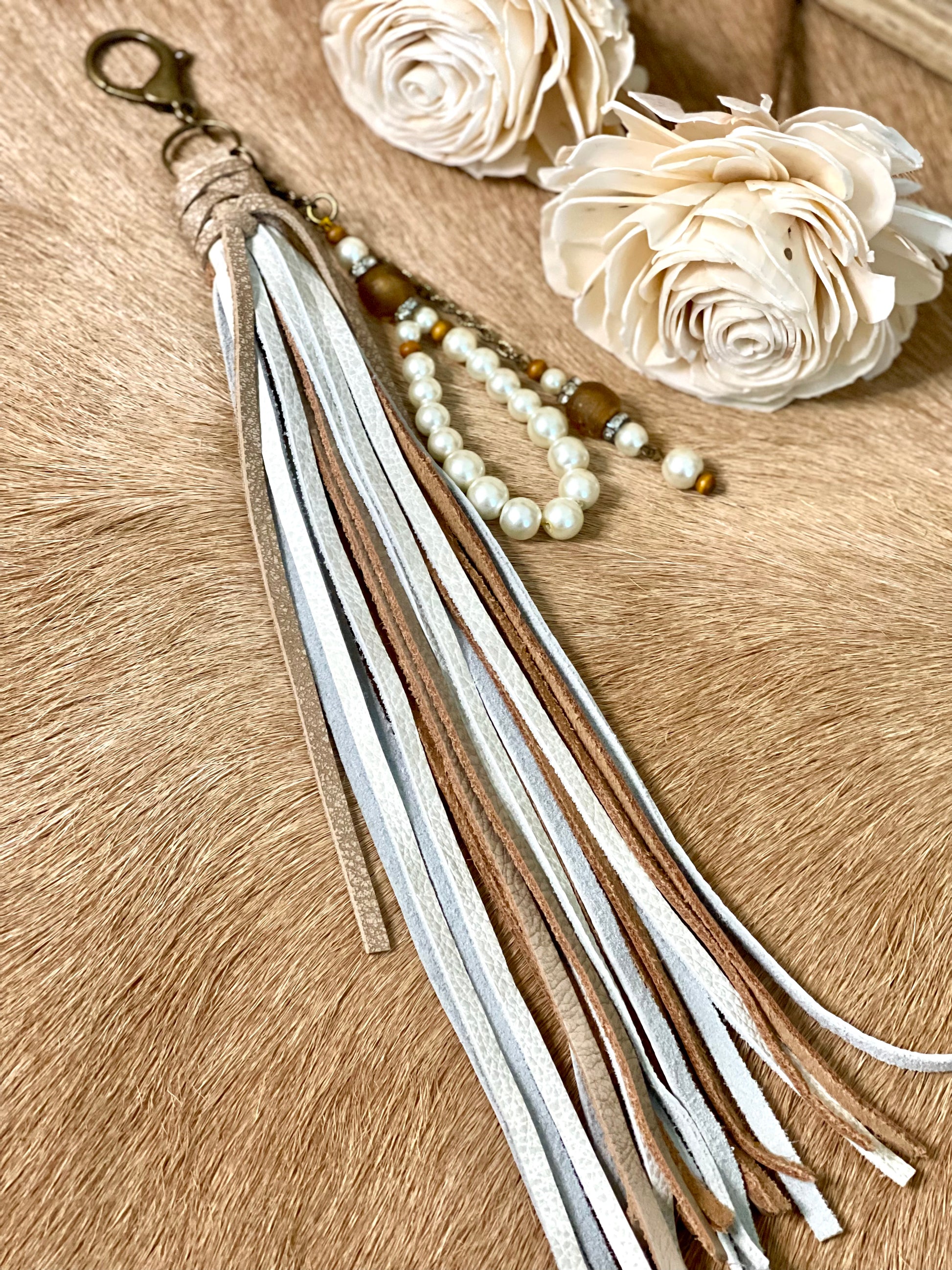 Tan & White w/Pearls - Purse Tassel
