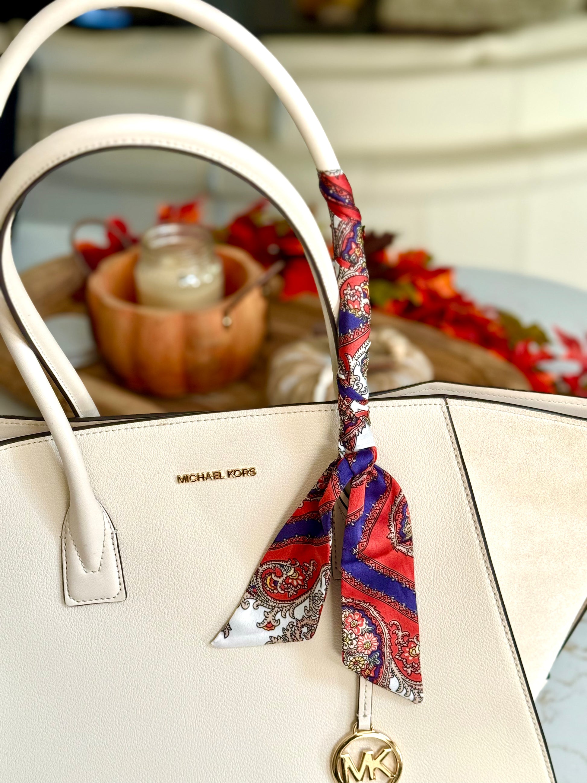 Classic twill scarf with a simple paisley pattern. It is sure to add a bright pop of color to any outfit or wrap your purse strap.