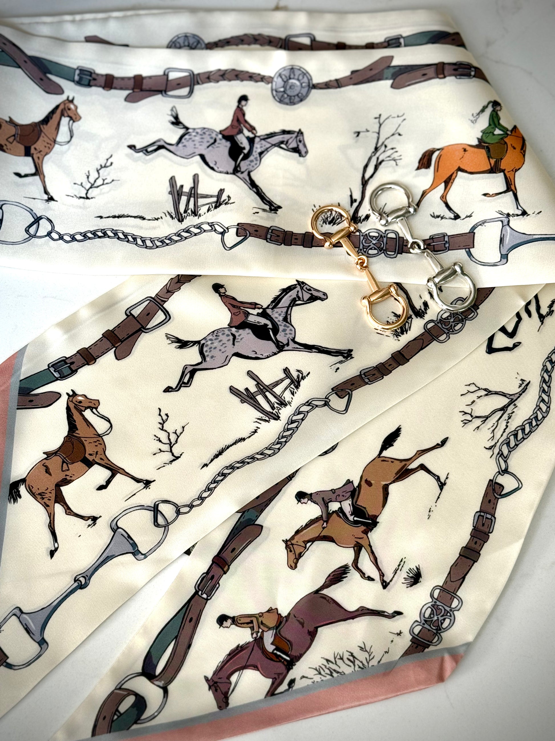 Satin Twill Silk Scarves - Equestrian