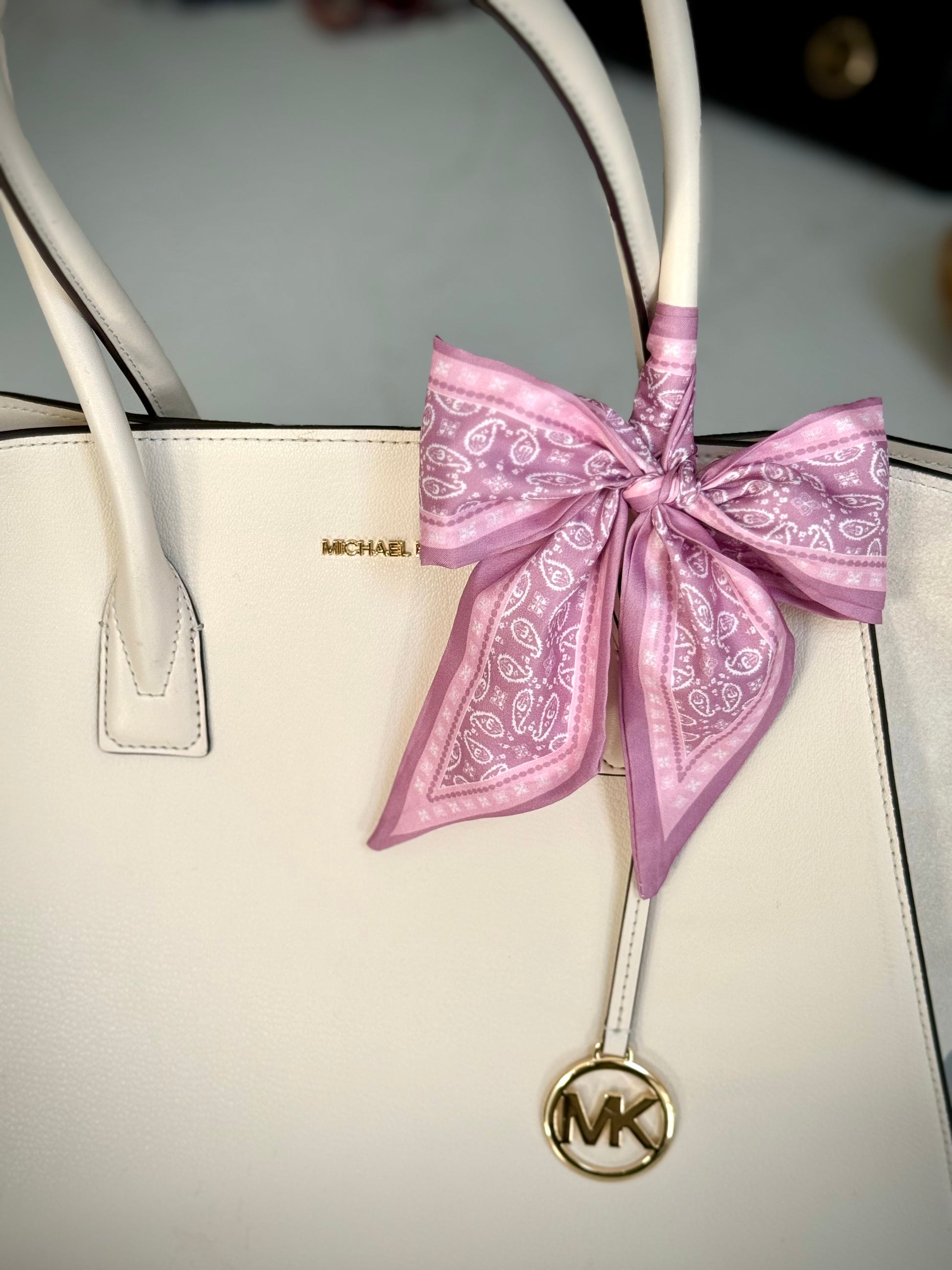 Classic twill scarf with a simple paisley pattern. It is sure to add a bright pop of color to any outfit or wrap your purse strap.