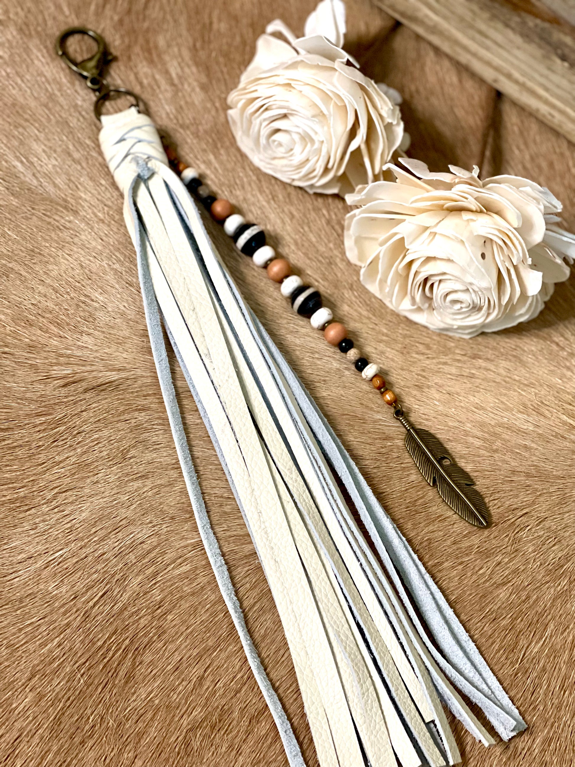 Hand-made, genuine leather purse tassels are a great way to add a little personality to your purse. Each one is unique and has a clasp to easily interchange and move between your bags.